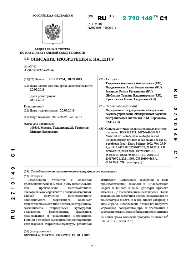 Классическое мороженого, представленное на современном отечественном рынке, трудно отнести к полезным продуктам из-за высокой калорийности, содержания синтетических подсластителей, красителей, ароматизаторов и стабилизаторов. Применение натурального молочного, фруктового и овощного сырья, замена сахара и жира на функциональные компоненты относятся к ведущим тенденциям расширения ассортимента мороженого. Разработка технологии и рецептур, позволяющих сочетать преимущества кисломолочных продуктов и пребиотиков в таком популярном продукте, как мороженое, является актуальной задачей.